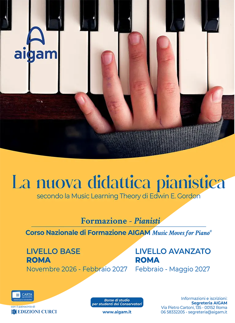 Sei un musicista e vivi in Campania, Puglia, Molise, Basilicata, Calabria, Sicilia, Sardegna o all'Estero? Partecipa al Corso Nazionale AIGAM "La nuova didattica pianistica" a Roma con condizioni agevolate: